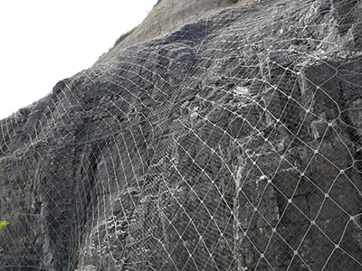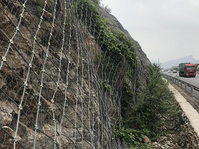 作用原理上類似于噴錨和土釘墻等面層護坡體系,但因其柔性特征能使系統(tǒng)將局部集中荷載向四周均材質(zhì):鋼絲繩網(wǎng)、普通鋼絲格柵(常稱鐵絲格柵)和TECCO高強度鋼絲格柵 勻傳遞以充分發(fā)揮整個系統(tǒng)的防護能力,即局部受載,整體作用,從而使系統(tǒng)能承受較大的荷載并降低單根錨桿的錨固力要求 。