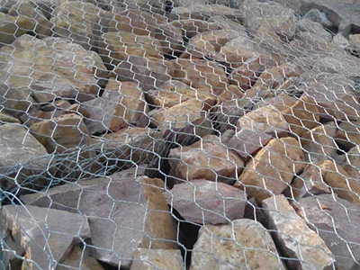 六角網(wǎng)鋪設護坡,樹叢和雜草等植物可以穿過鐵絲網(wǎng)生長,不僅能夠固定石塊,更主要的是有利于綠化環(huán)境,用綠色植物來固定土壤,防范山坡石漠化。